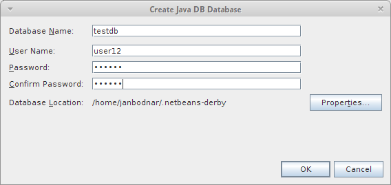 and password. Note the database location string. It is the Java DB system directory,