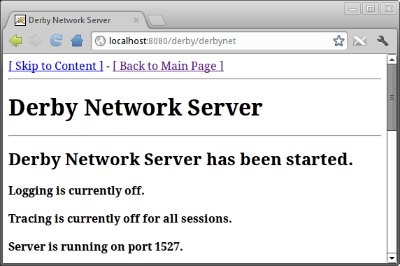 To start the Derby database, we navigate to localhost:8080/derby/derbynet.