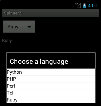 In this chapter of the Android development tutorial we will present a spinner widget.